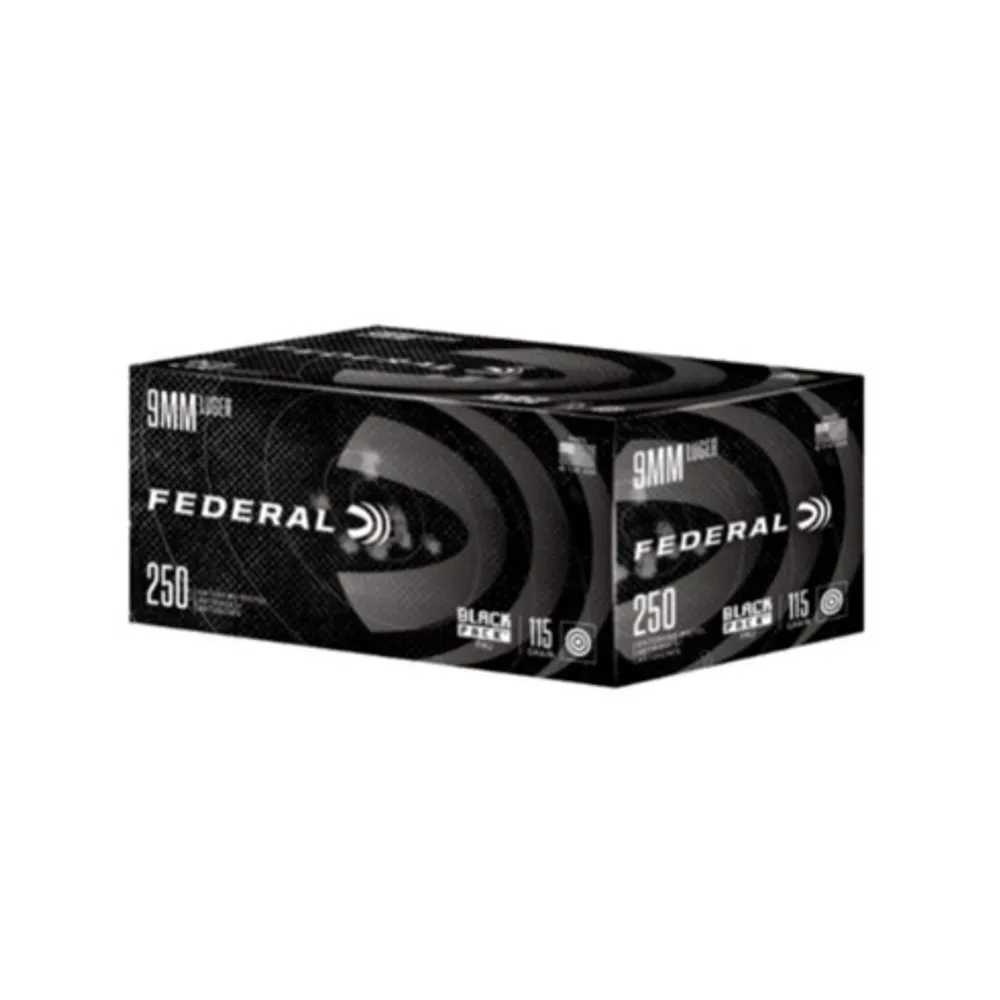 FEDERAL BLACK PACK 9MM LUGER 115 GRAIN FULL METAL JACKET ROUND NOSE 1180 FPS 250 ROUNDS