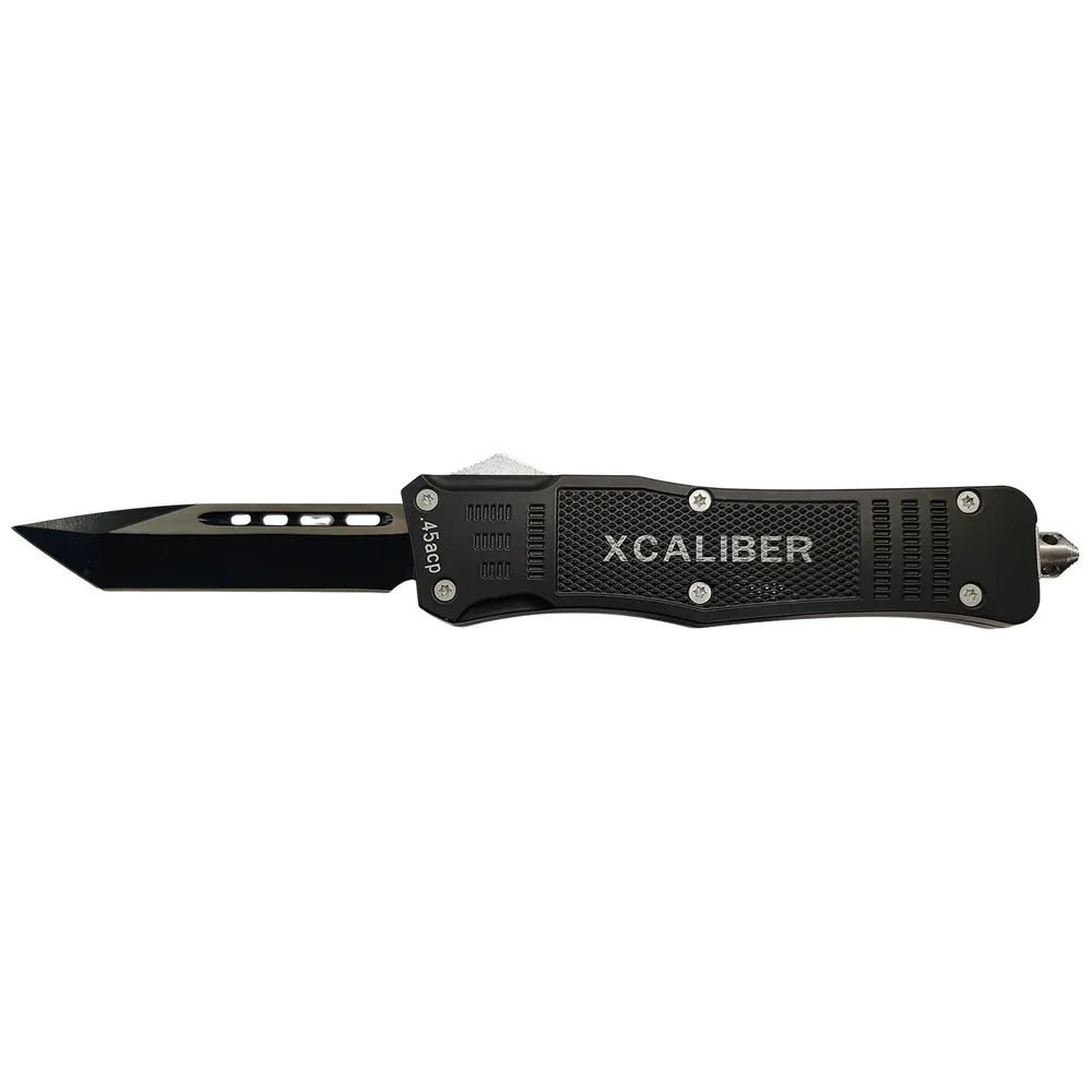 Xcaliber Knife Company 45 ACP Large 3.80" OTF Tanto Plain Black 440C SS Blade, 5.30" Steel Handle