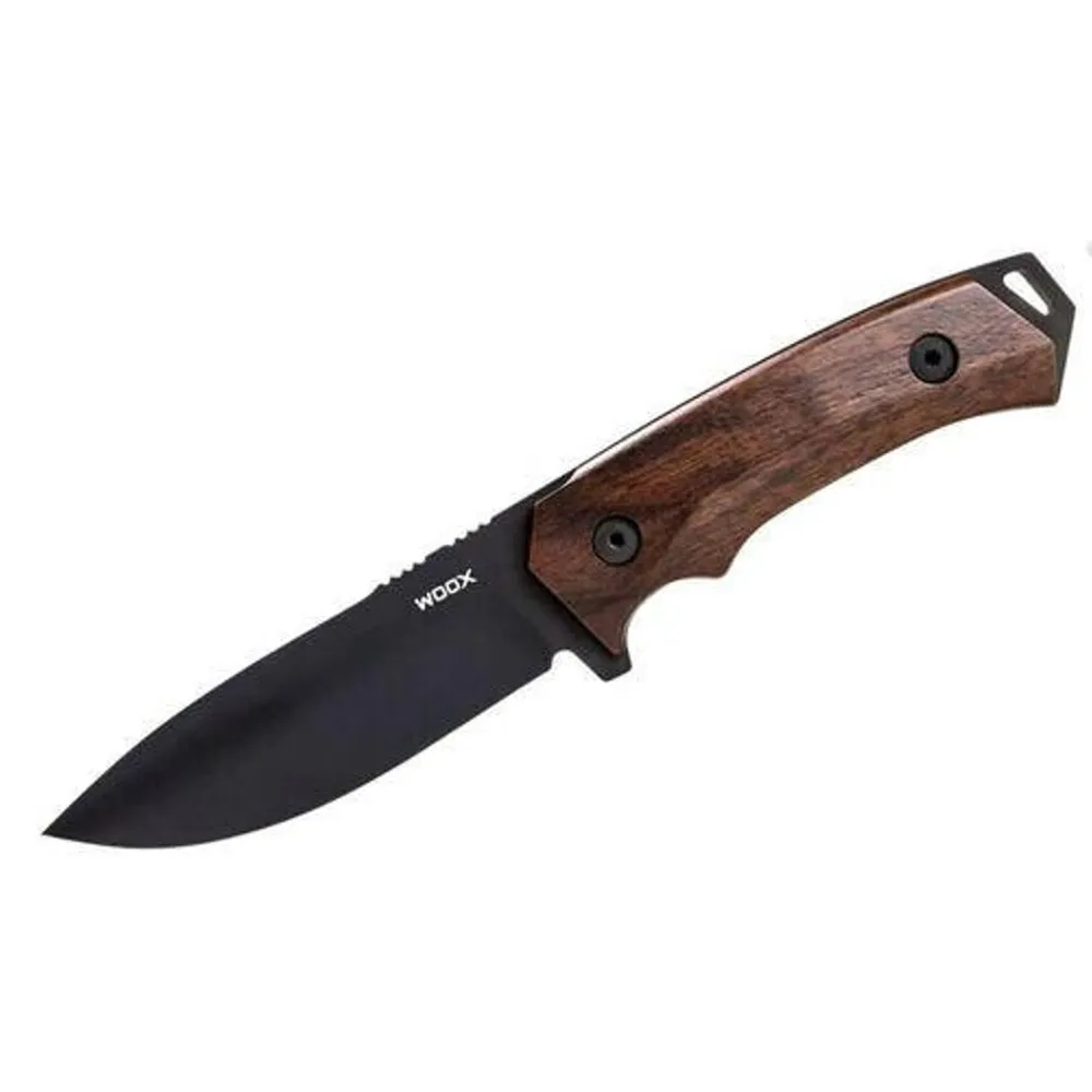 WOOX Rock 62 Fixed Blade Knife 4.5" Sleipner Black Drop Point Blade, Smooth Walnut Wood Handles, Leather Sheath - WXK00101 Sheath