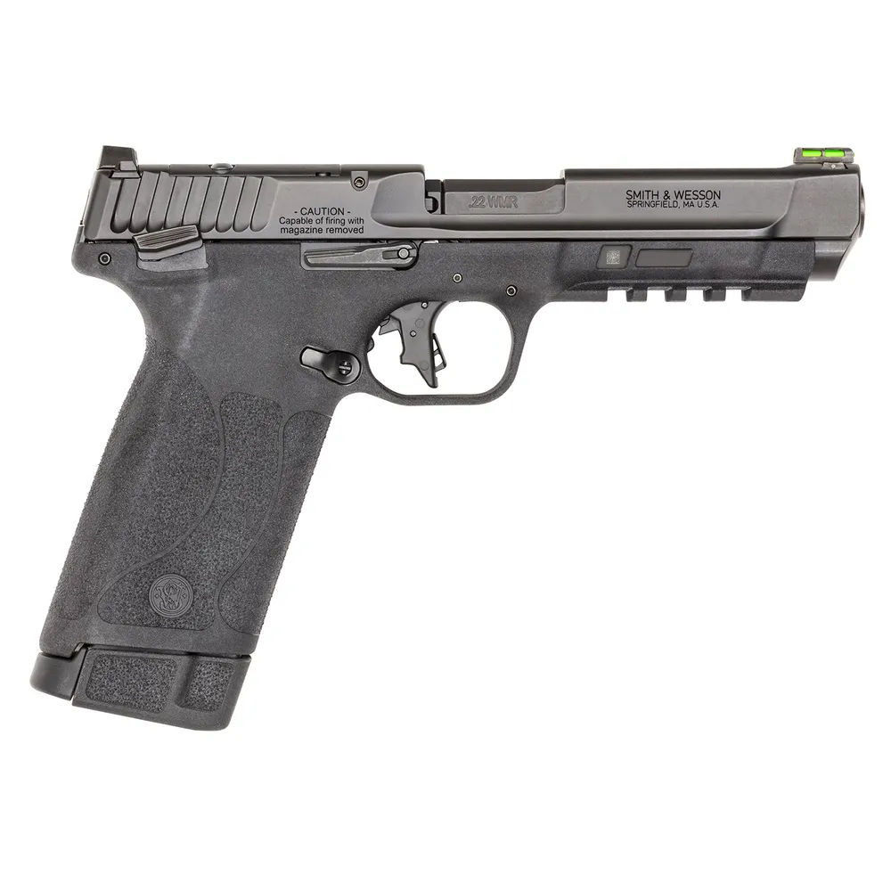 Smith & Wesson 13433 M&P 22 Full Size Frame 22 WMR 30+1, 4.35" Black Armornite Stainless Steel w/Tempo System Barrel, Black Armornite Optic Ready/Serrated Slide, Black Polymer Frame w/Picatinny Rail Frame, Black Textured Grip, Ambidextrous Thumb Safety,
