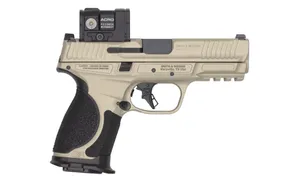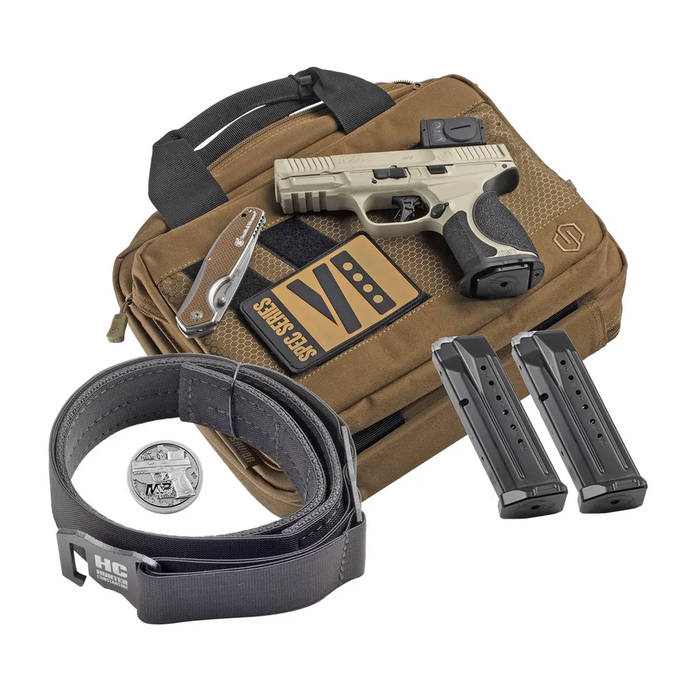 Smith & Wesson 14634 M&P9 M2.0 Spec VI Bundle 9mm Luger 15+1 4" Black Armornite Ported Barrel, Champagne Cerakote Stainless Steel Ported/Serrated w/Optic Slide & Aluminum Frame w/Picatinny Rail, Interchangeable Palmswell Grip, Aimpoint Acro P-2 Red Dot