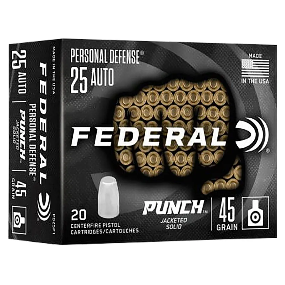 Federal PD25P1 Punch Personal Defense 25 ACP 45 grain Hollow Point 20 rounds