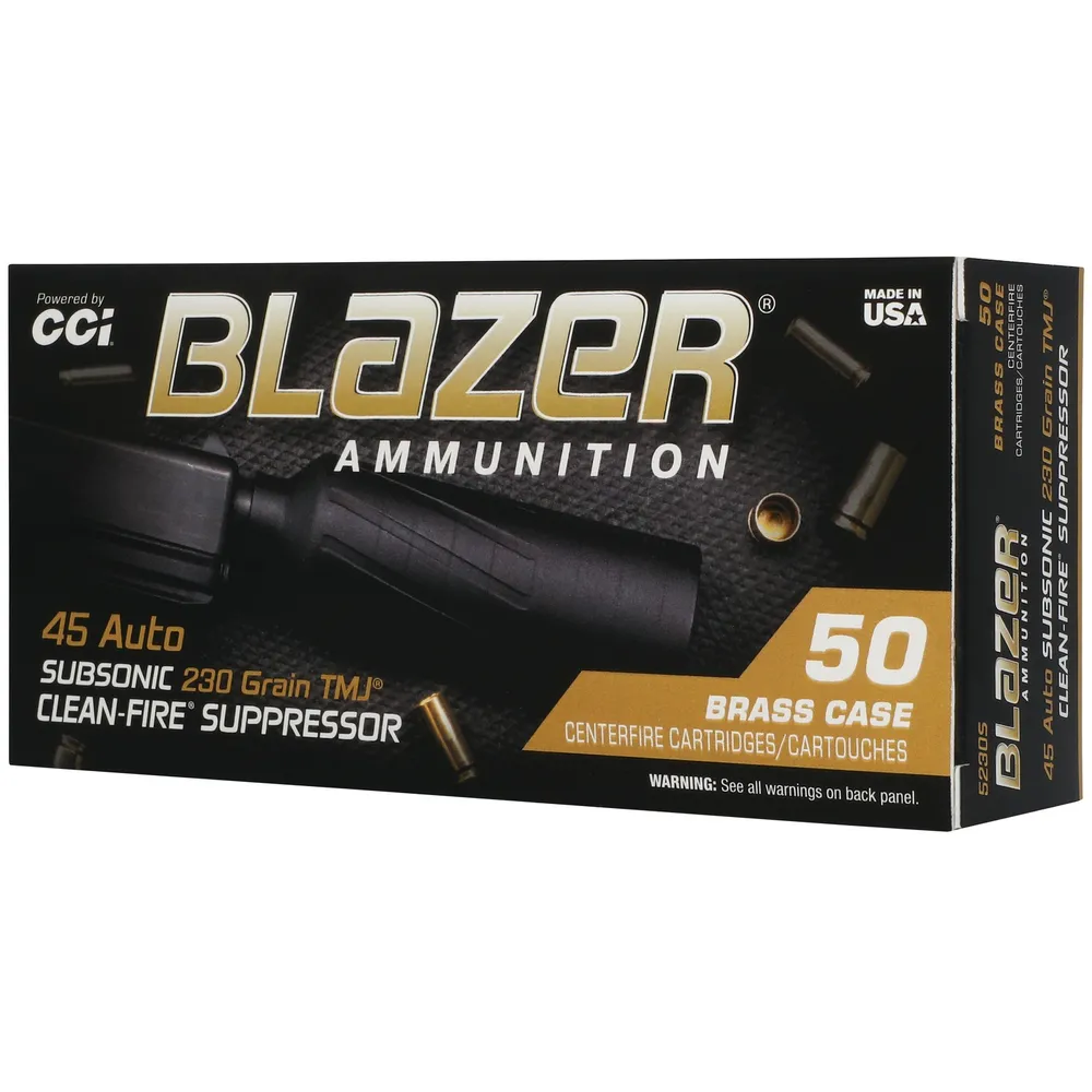 CCI 5230S Blazer subsonic 45 ACP 230 grain Total Metal Jacket clean fire 50 rounds