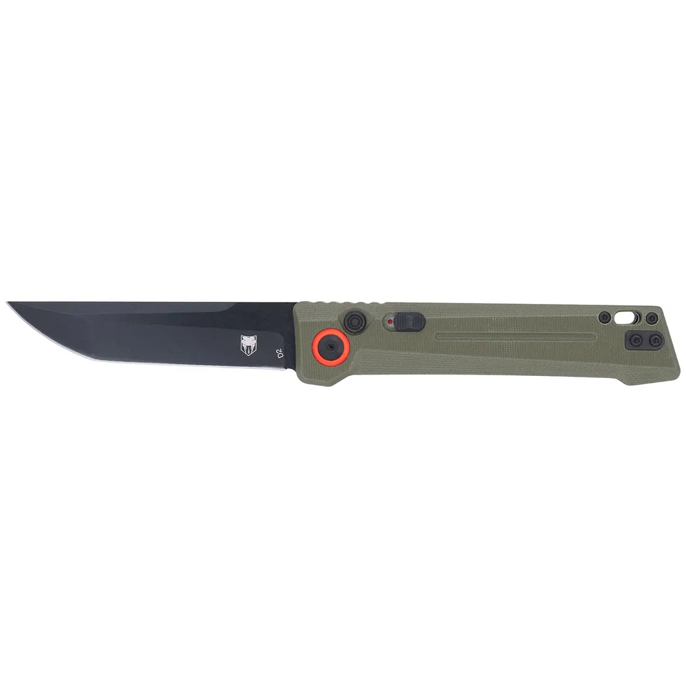 CobraTec Knives CTIFRODG Inferno 3.50" OTF Tanto Plain Black TiCN D2 Steel Blade, 4.75" OD Green Textured Handle