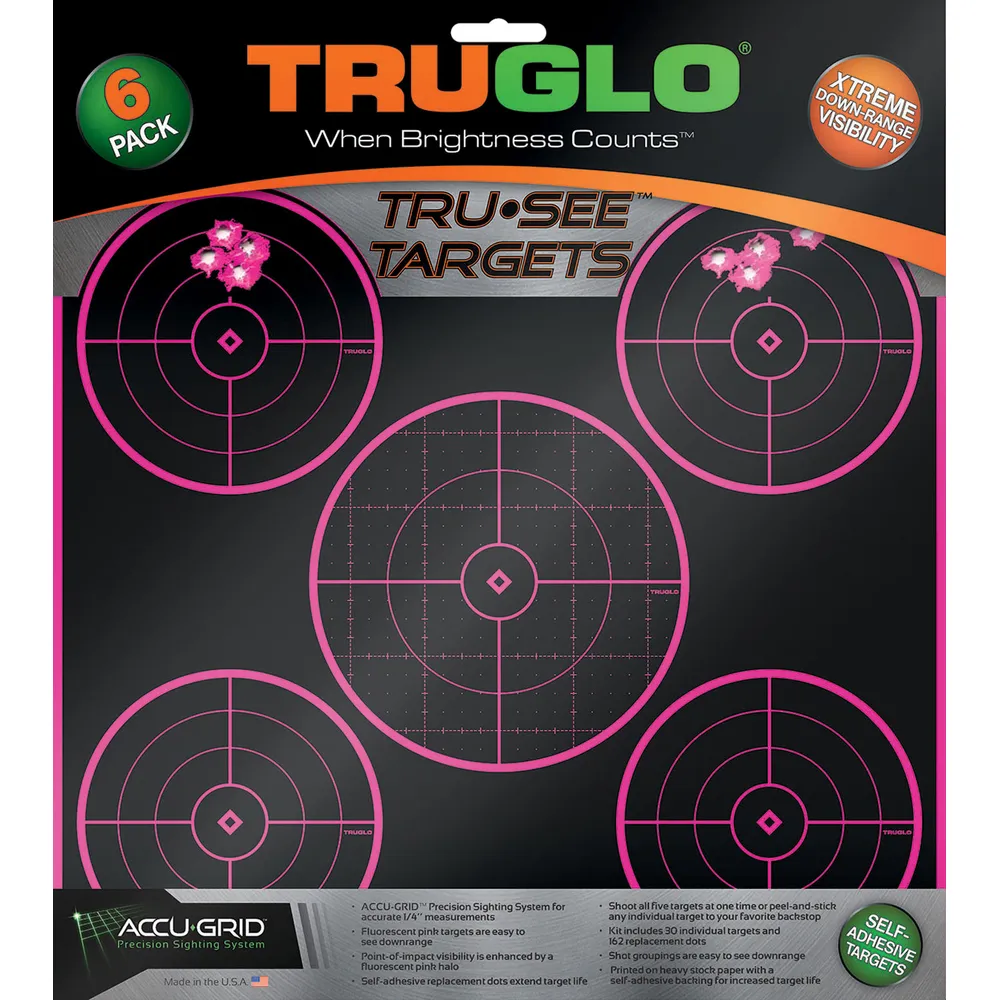TruGlo TG11P6 Tru-See 5-Bull Target Self-Adhesive Heavy Paper Black/Pink 12"x12" 6 Pack