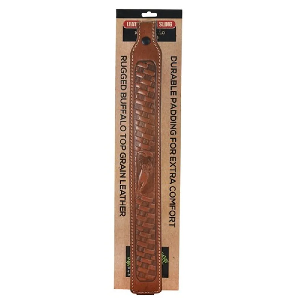 Saddle Mate Basket Weave Brown Leather Gun Rifle Sling with Basket Weave Imprint