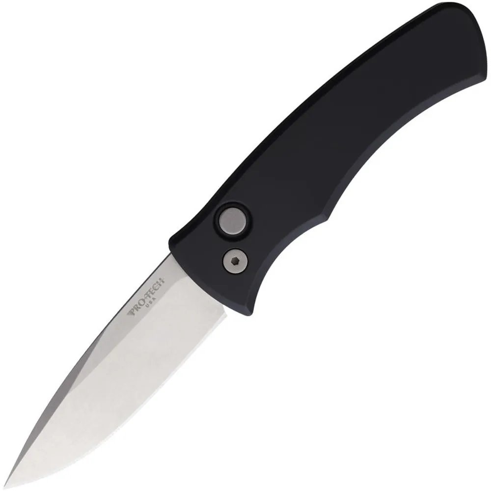 Pro Tech DUKE2101 Auto Duke 2 Stonewash MagnaCut Drop Point Button Lock Knife Black Anodized Aluminum Handles