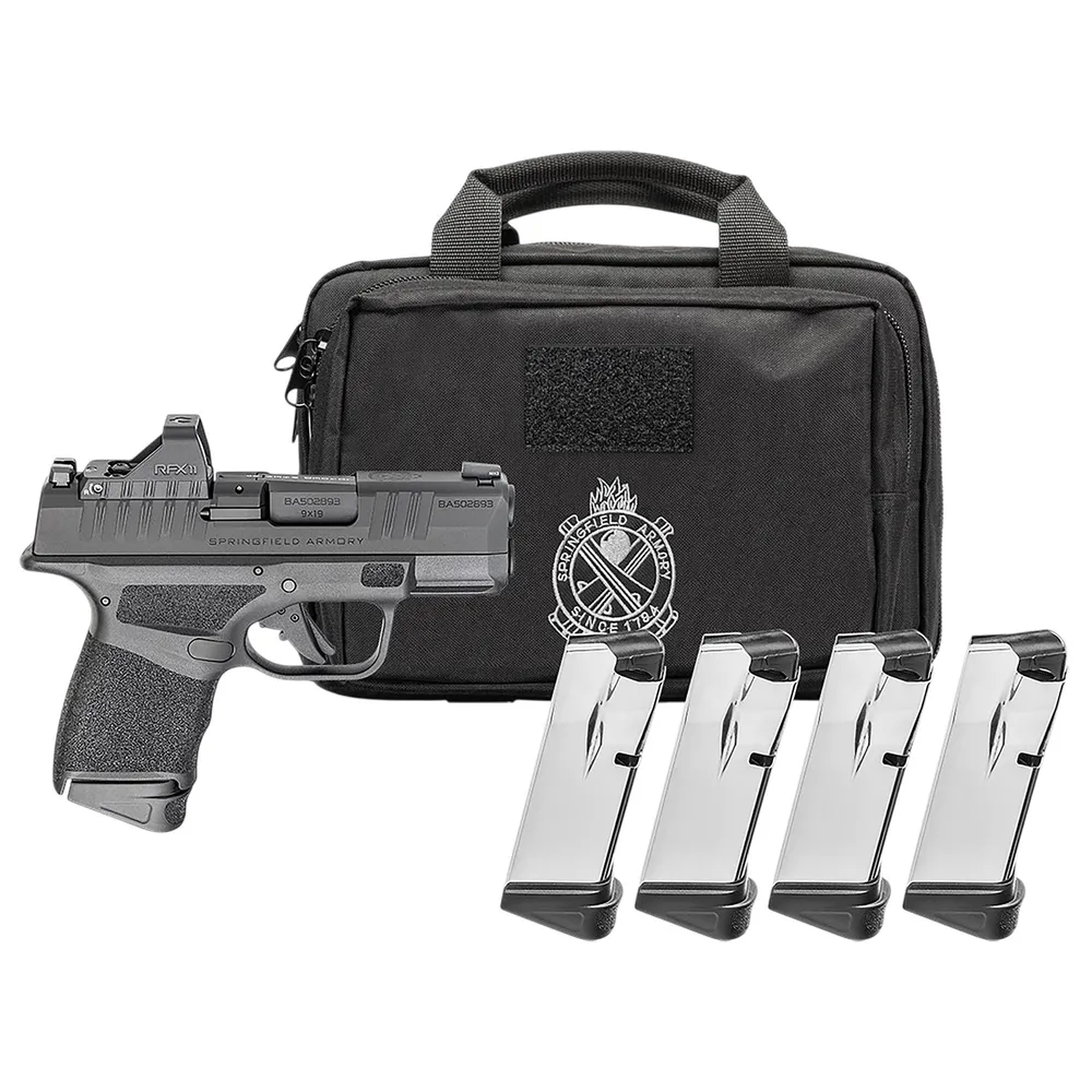 Springfield Armory HC931380BOSPPAC Hellcat OSP Gear Pac Micro Compact 380 ACP 13+1 3" Black Melonite Steel Barrel & Optic Ready/Serrated Slide, Black Polymer Frame w/Accessory Rail, Adaptive Texture Grip, Viridian RFX-11 Green Dot